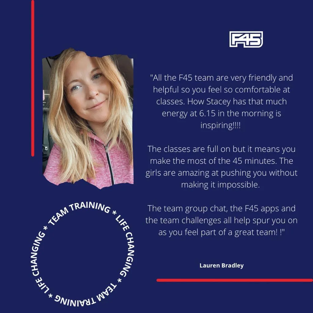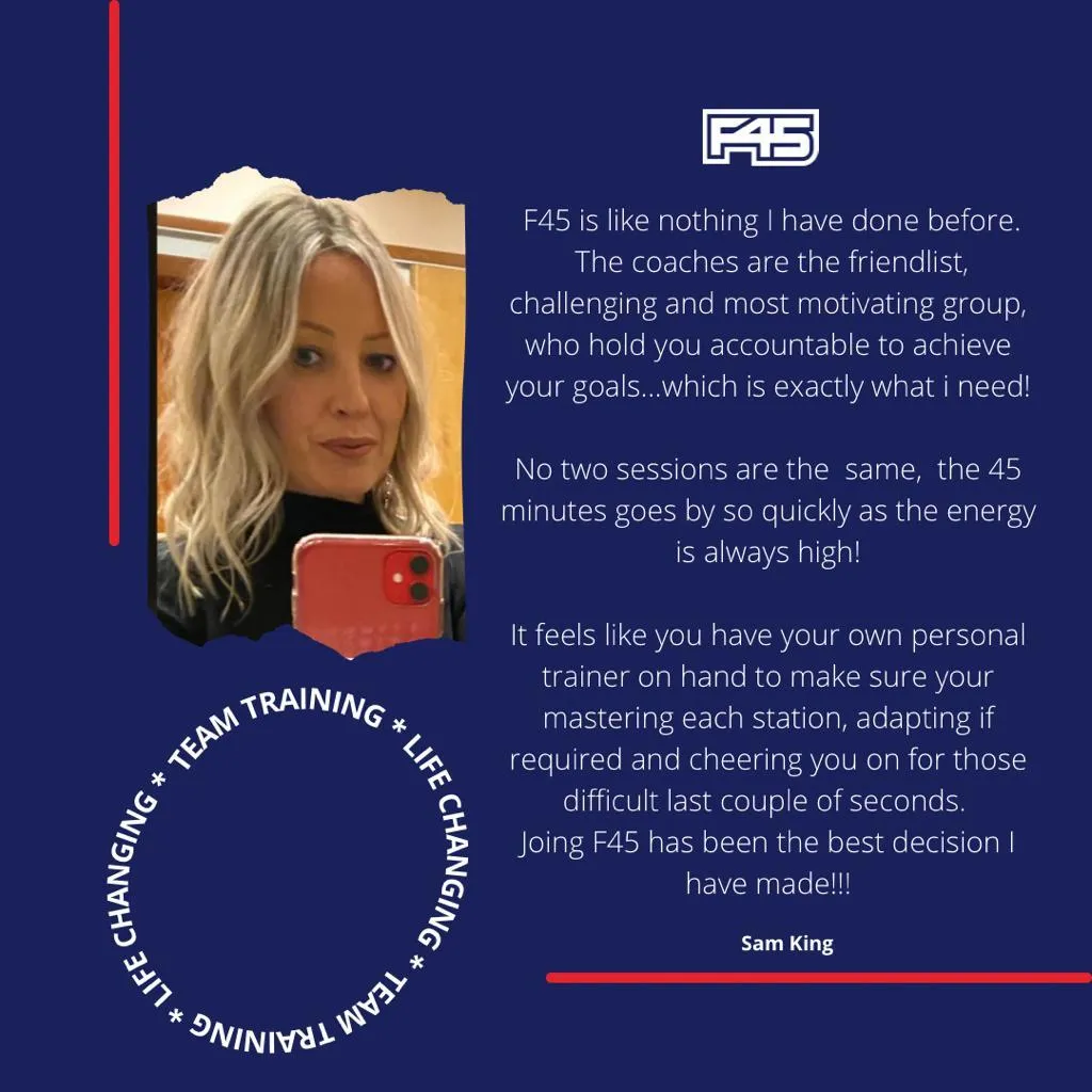 Whatever your level of fitness - whether you're a frequent gym bunny or complete fitness newbie, F45 was designed to get you RESULTS! And you'll leave every visit with a smile on your face!